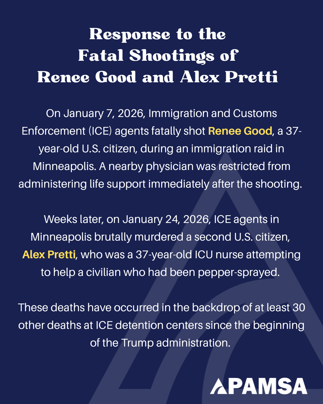Response to the Fatal Shootings of Renee Good and Alex Pretti